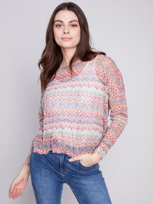 Charlie B Crewneck Top with Slits at Sides